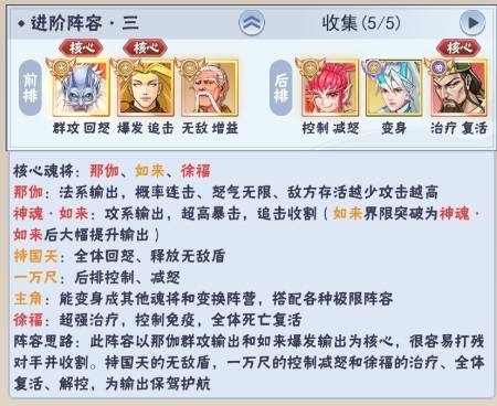 实战中那伽清场、如来补刀,可以快速让敌方减员,剩下的难以处理的敌人,一万尺和持国老爷爷的特技可以很好的处理,可以让我们把资源更集中投入在那伽和如来身上。